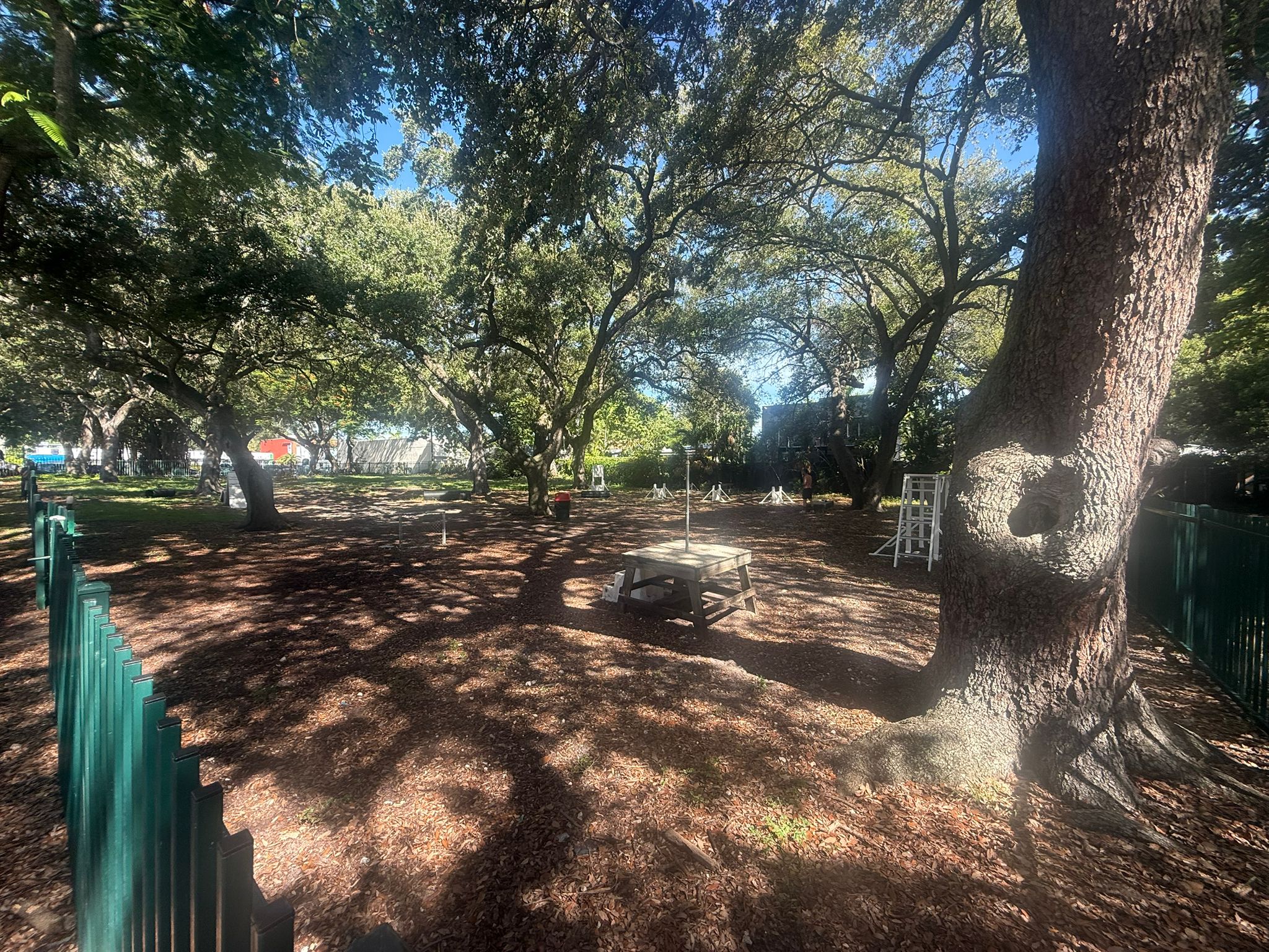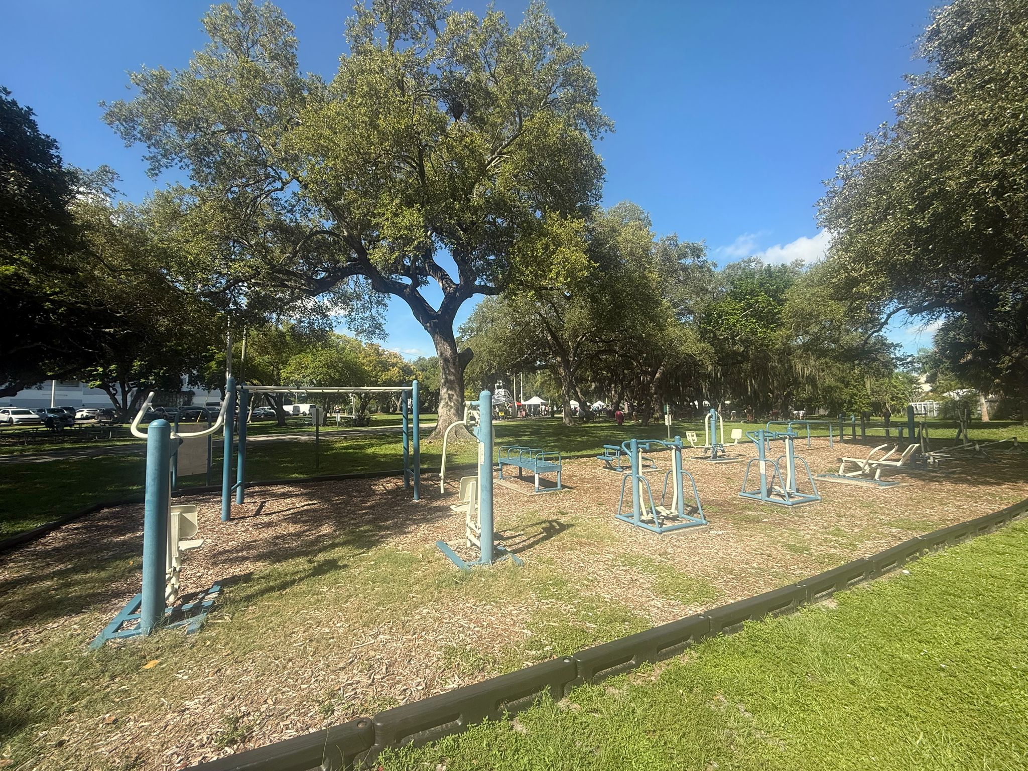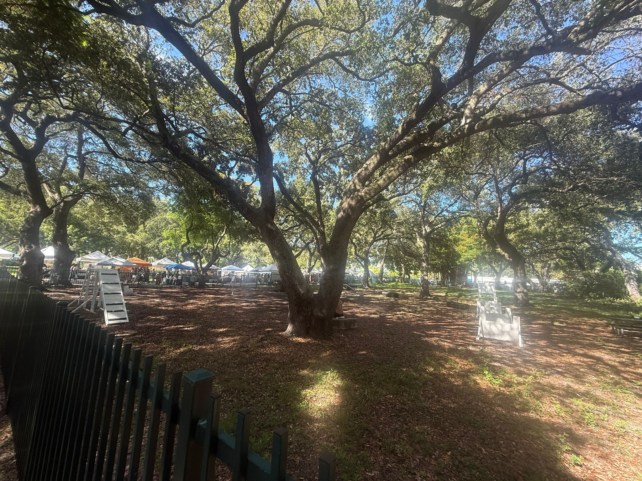 While the park is active every day, Saturday morning is the main event. A free, community-led yoga class meets at 10 AM beneath the banyans. By the time mats are rolled up, the farmers market is in full swing—stalls of fresh produce, breads, juices, and handmade goods stretch under the shade.